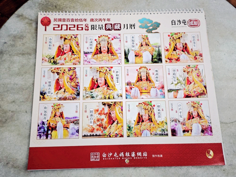 2026白沙屯媽祖單張年曆暨12幅月曆